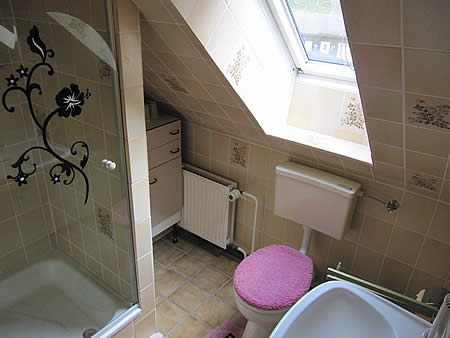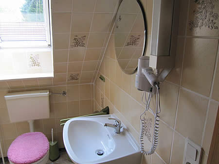 - Das Badezimmer ist mit Dusche/WC und Fön ausgestattet.