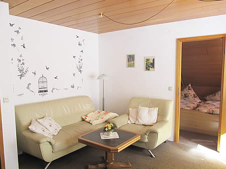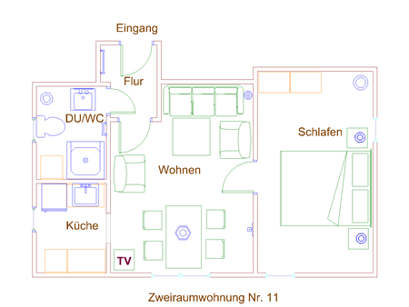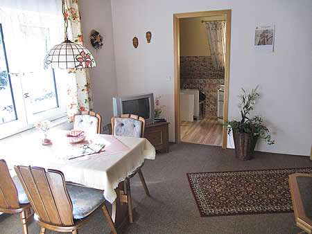 - Diese Zweiraumwohnung (40 m²) verfügt über Wohnraum mit Leder-Sitzecke, Esstisch, TV-Gerät, WLAN-Internet