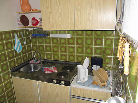 - Küchenzeile mit Doppelkochplatten, Kühlschrank mit Gefrierfach, Kaffeemaschine, Wasserkocher